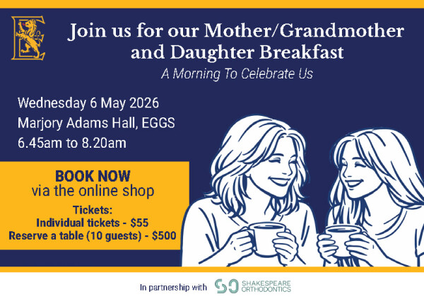 The Prefects are delighted to be hosting our Mother/Grandmother and Daughter Breakfast on Wednesday 6 May, 6.45am to 8.20am. This special occasion offers a chance for students and the important women in their lives to come together and enjoy a shared morning within our school community.